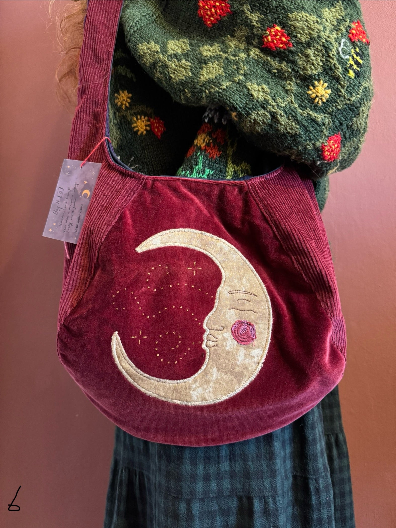 Classic Double sided boho bag with sun and moon design with hand painted stars. This bag has no closure and includes a single pocket.